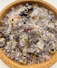 Made with mineral rich Dead Sea salt, Himalayan pink salt and Epsom salt. Fragranced with essential oils and sustainably sourced dried flowers.